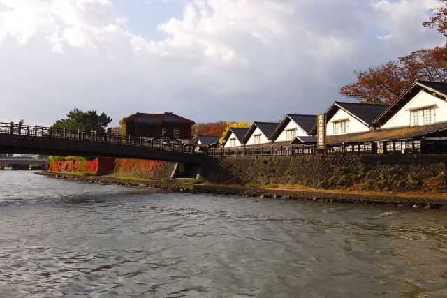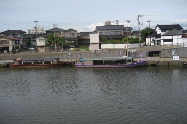 酒田港から国指定史跡「山居倉庫」までの新井田川を運行する屋形船。