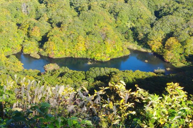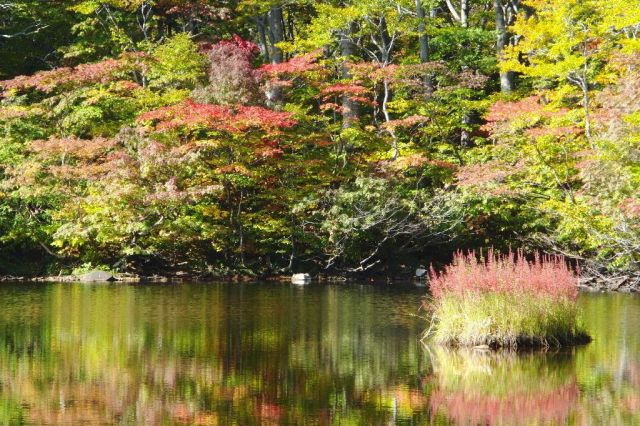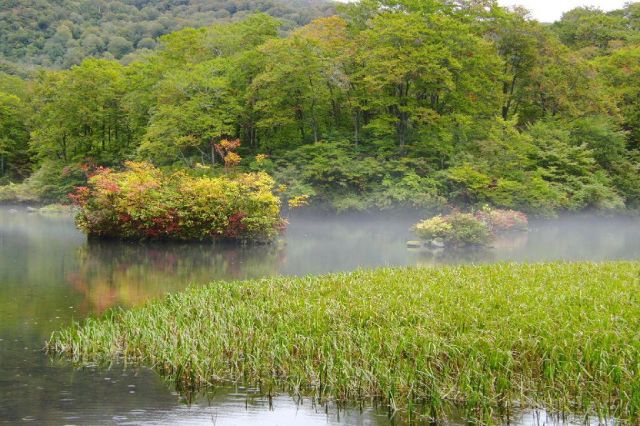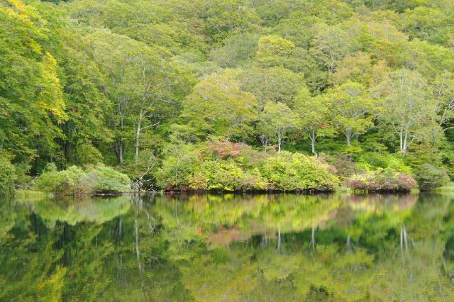 鳥海山湯の台口登山口(車道終点)に向かう途中にあるのが鶴間池です。