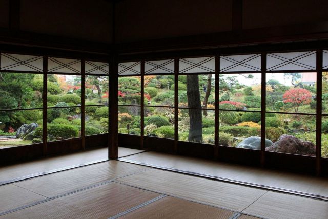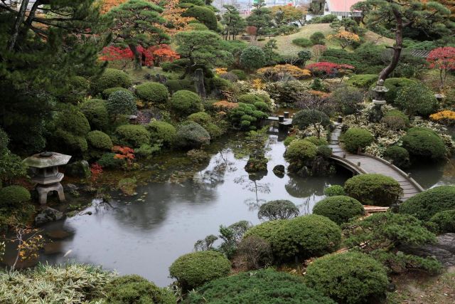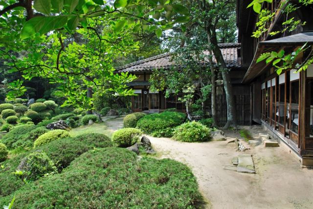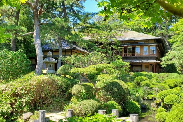 1813(文化10)年に建築され、名勝「鶴舞園(かくぶえん)」をはさんで本館と新館(1968(昭和43)年竣工)があります。