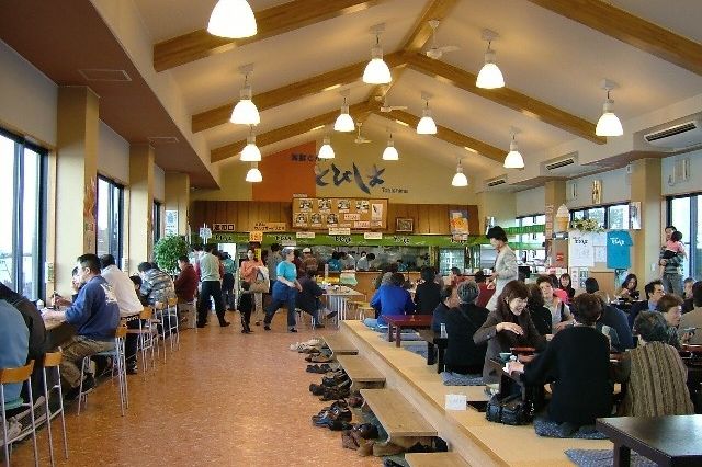 2階には食事処「海鮮どんやとびしま」があり、酒田港を眺めながら、海鮮丼や舟盛膳などの食事を楽しむことが出来ます。