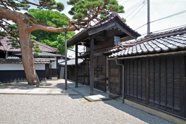 江戸時代を通じて繁栄し、日本海海運に大きな役割を果たした姿を今に伝えています。屋敷は石置杉皮葺屋根の典型的な町家造りとなっており、内部は通り庭(土間)に面して、十間余りの座敷、板の間が並んでいます。
