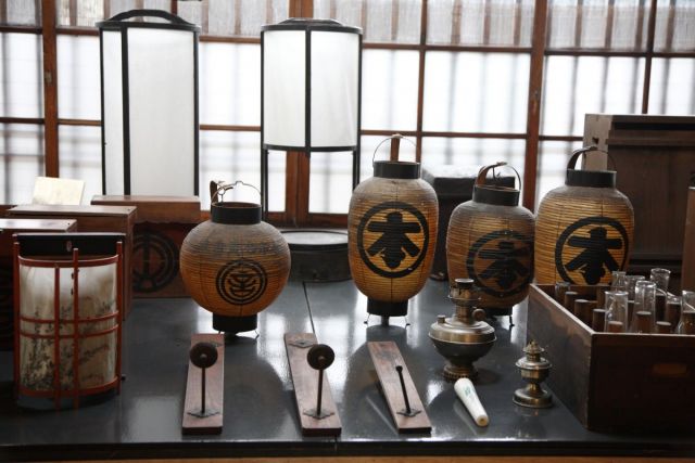 また、道路を挟んである別館「お店(たな)」では、帳場や度量衡、行灯等の灯かり、台所用品などを展示しながらお土産品も販売しています。