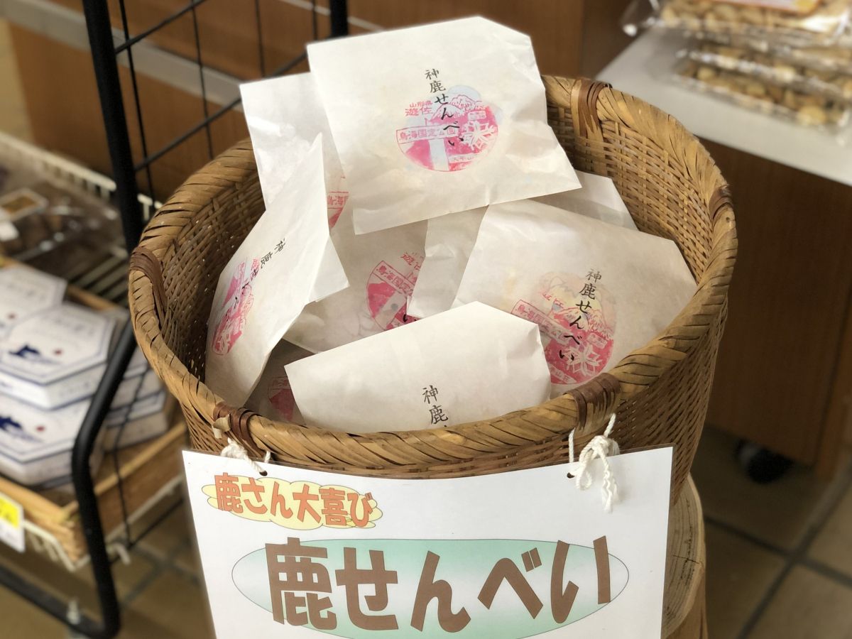 大平山荘の売店では鹿せんべいが販売されています。せっかくなので2袋購入してみると、中にはかわいらしい袋に入った真っ白いおせんべいが。もちろん人間も食べられるとのことだったので1枚味見してみましたが……塩気の無いサラダせんべいといった感じでした。