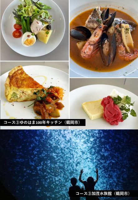 湯野浜海水浴場→ゆのはま100年キッチン→加茂水族館→渚の交番カモンマーレ