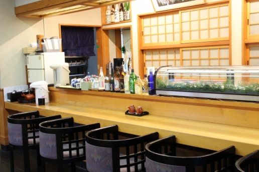 店内は和風の落ち着ける空間で、カウンター、小部屋、大広間があります。