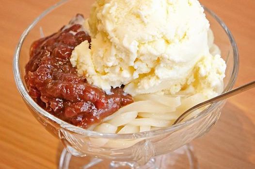 飛島の伝統食をアレンジしたスイーツ「あずきうどん」もぜひご賞味ください。
