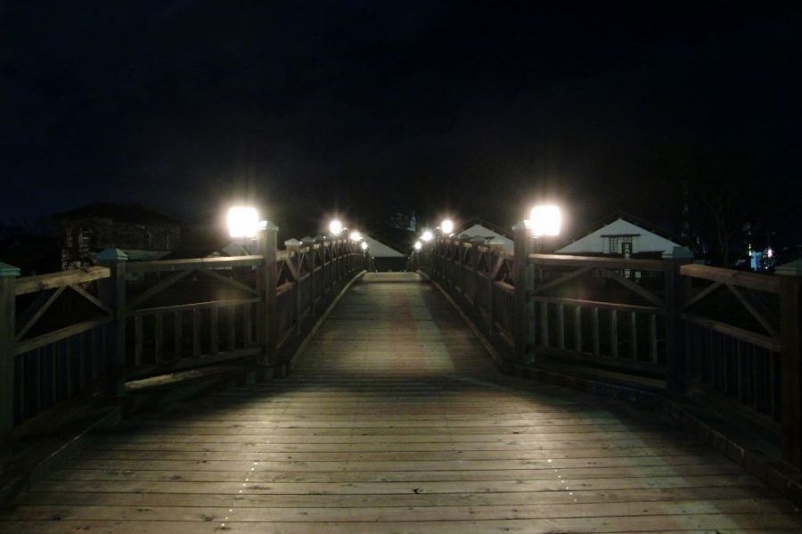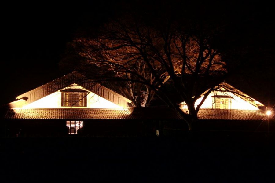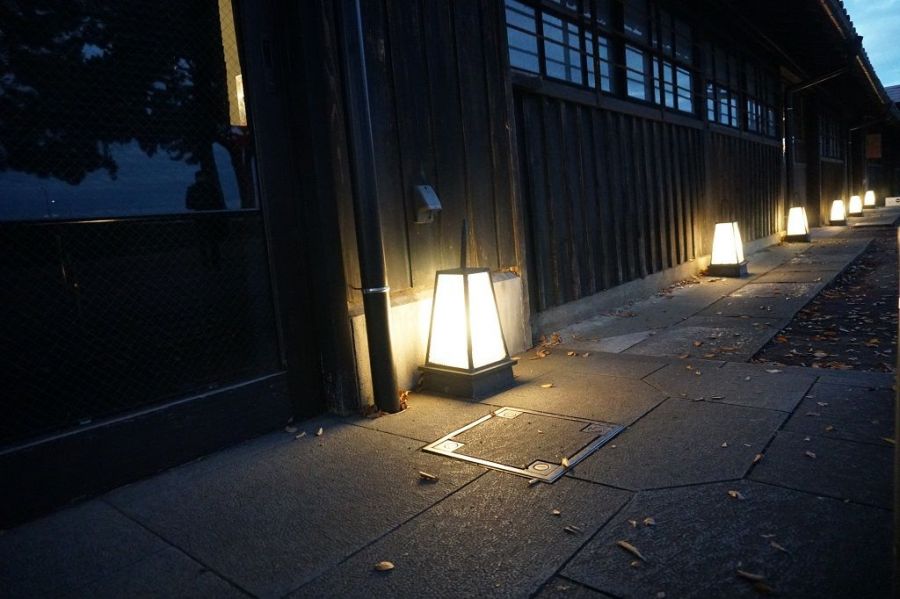 さんきょそうこのらいとあっぷ歴史を感じさせる山居倉庫のライトアップ