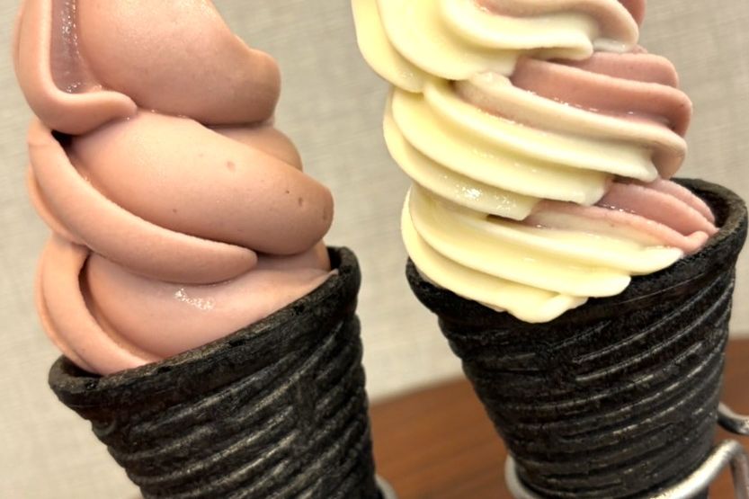 単品で提供するときのコーンは竹炭の入った黒いコーン。サクサクと香ばしくソフトと相性ピッタリです。